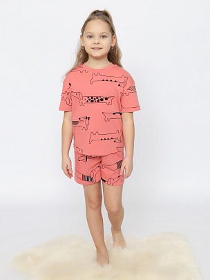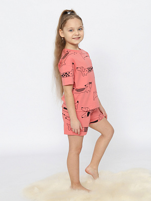 Пижама для девочки (футболка, шорты) коралловая