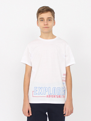 Футболка для девочки с трендовым колледж-принтом, с блестящим эффектом и контрастными бейками по горловине и рукавам. Модель сделана из 100%-хлопкового трикотажа. Материал приятно прилегает к телу, не сковывает движения и позволяет коже дышать.