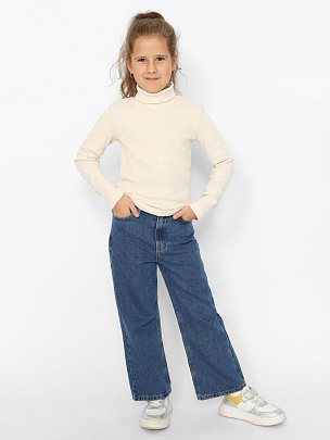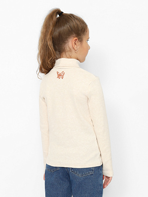 Водолазка с небольшим принтом на спинке для девочки. Модель прилегающего силуэта, с воротником-стойкой с отворотом и длинными рукавами.