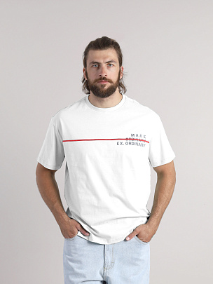 Футболка мужская свободного покроя с короткими втачными рукавами. Горловина круглая, обработана воротником из полотна с эластаном. Перед футболки декорирован принтом "ВОЗВЫШАТЬСЯ".