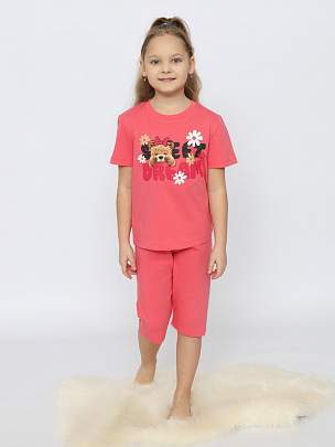 Футболка с коротким рукавом. Горловина круглая, обработана узким воротником из полотна с эластаном. Перед оформлен принтом.